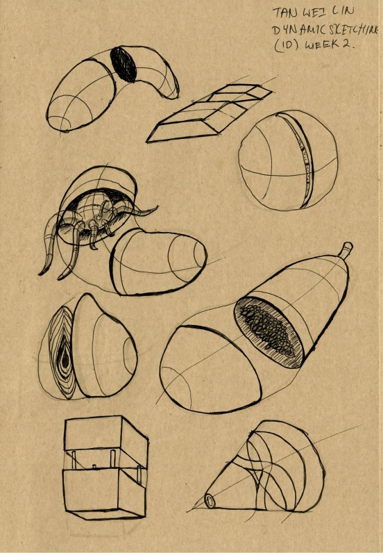 I took up the Dynamic Sketching 1 course by CG Master Academy recently and here are my works. The 1st 2 weeks starts with the basic all over again, drawing lines, arcs and circles. Then we move to do contour drawings and how to apply it to get 3D form easily.